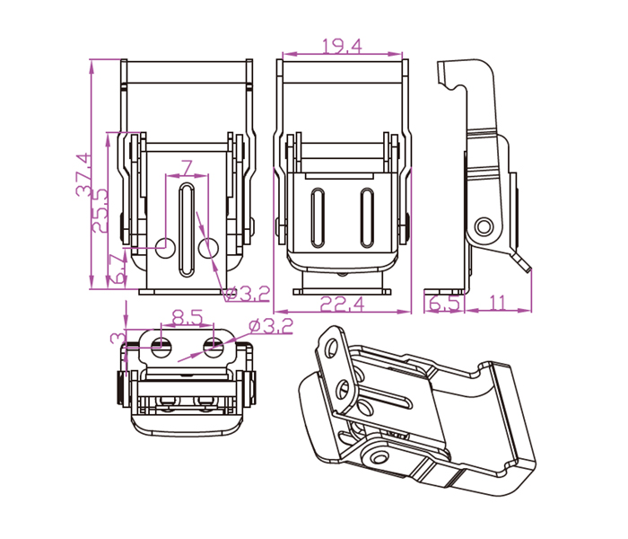 直角安裝型工具箱扣